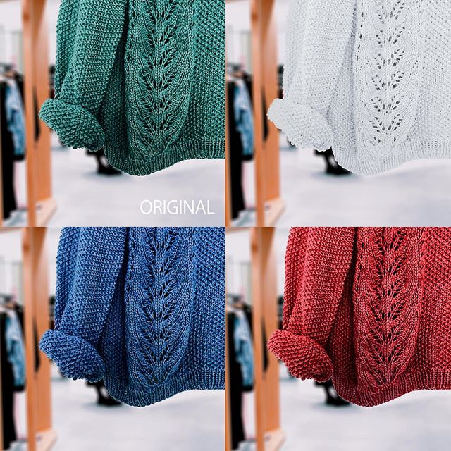 濃い色系のセーターを難度が高い白色にレタッチ。